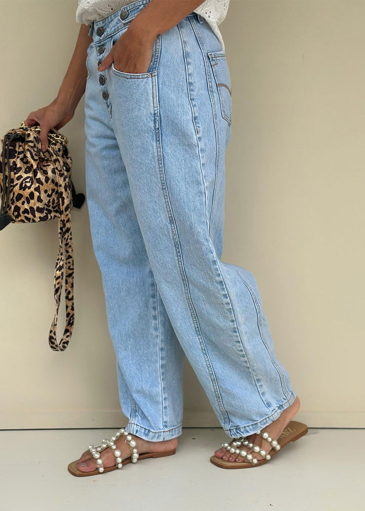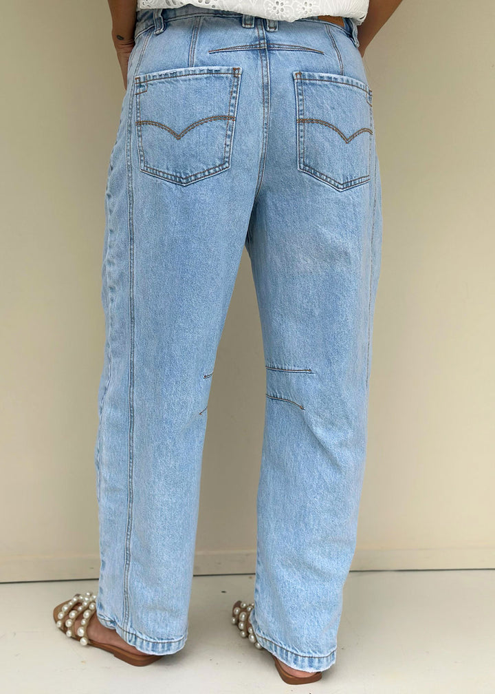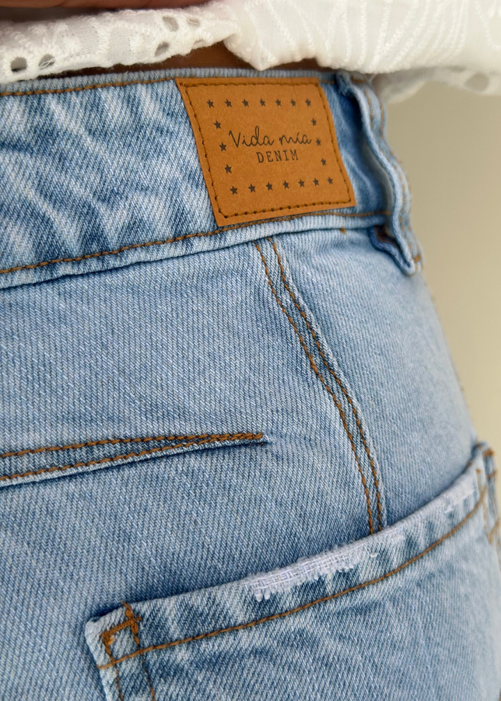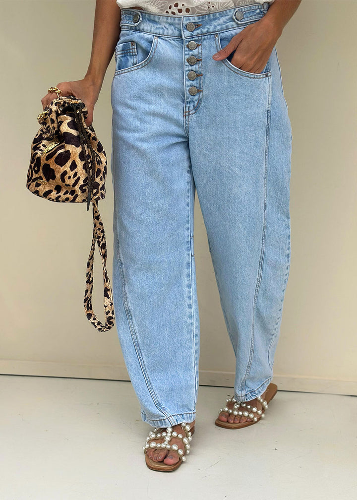Jean Barrel Tiro Medio Azul Claro - Alaya